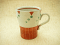 《アウトレット特価》緑の水玉がアクセントの赤絵マグ