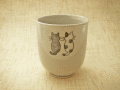 グレーとブチの猫ちゃんの後ろ姿が哀愁漂う?!瀬戸焼陶器お湯のみです。