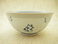 四つに間取りされた中に猫ちゃんの後ろ姿が描かれた瀬戸焼陶器のご飯茶わんです。